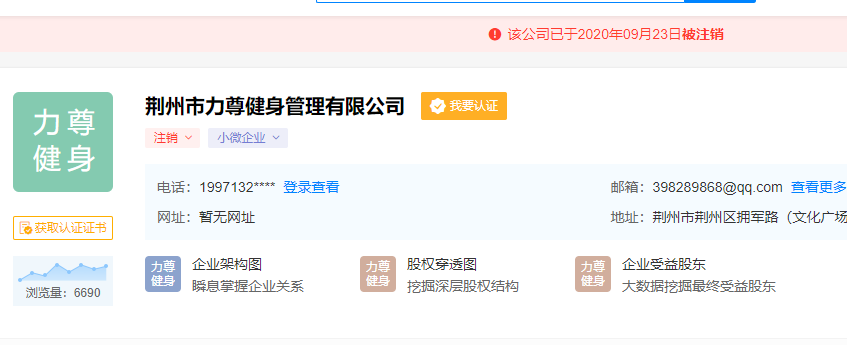标题: 荆州又一健身房“破产”,公司注销后还在推广!